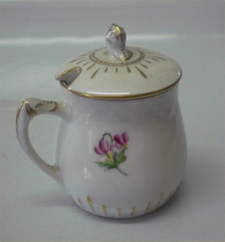 Bing & Grøndahl Saksisk Blomst på hvidt porcelæn 174 Cremekop - sennepskop med låg 8,5 cm I fin og hel stand
