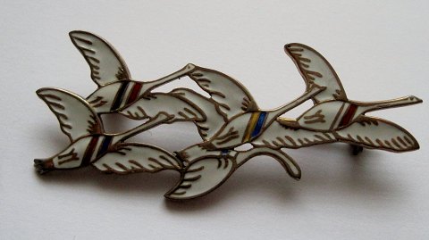 Erik Magnussen Sølv broche med emalje af de 5 svaner