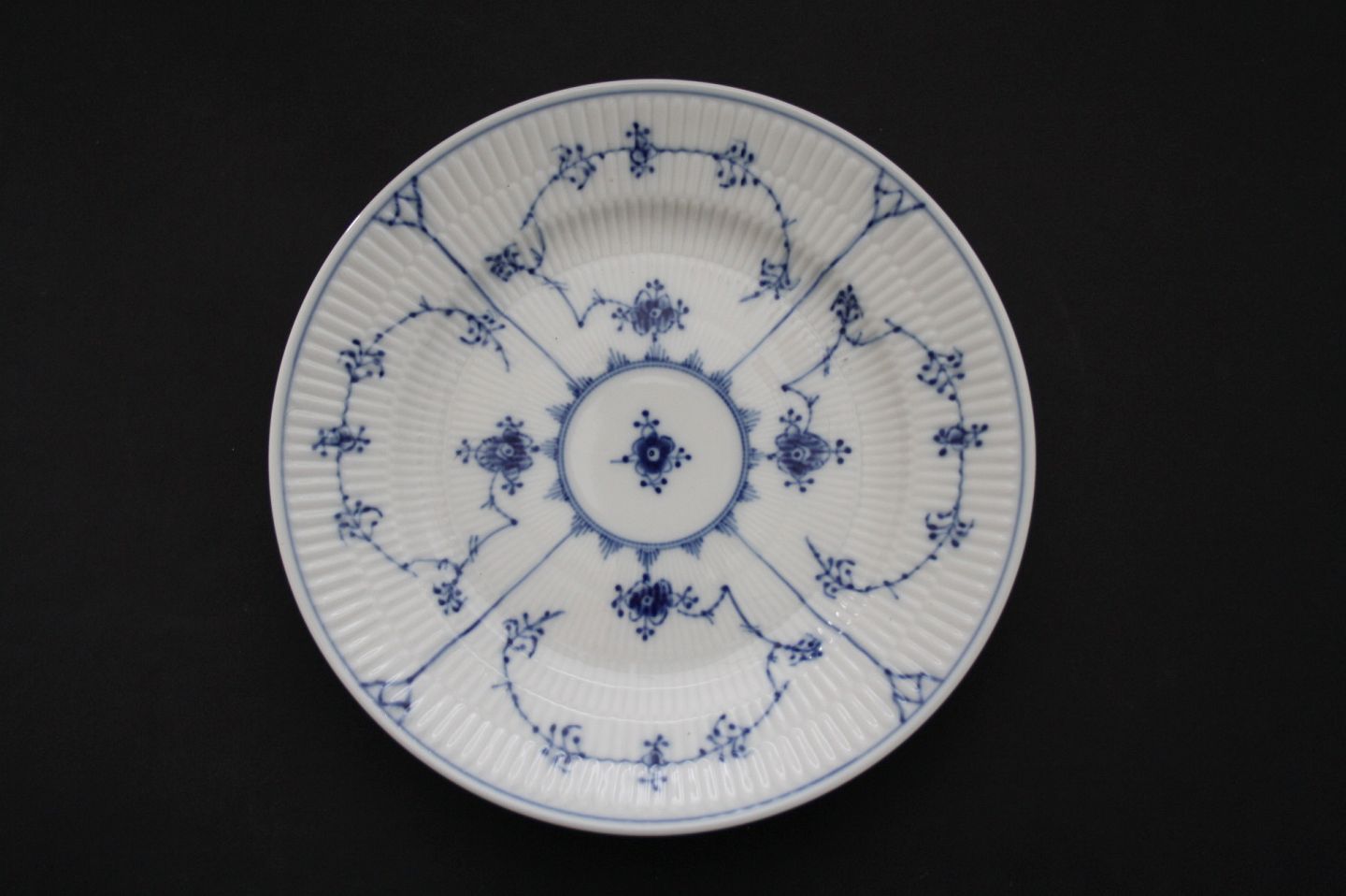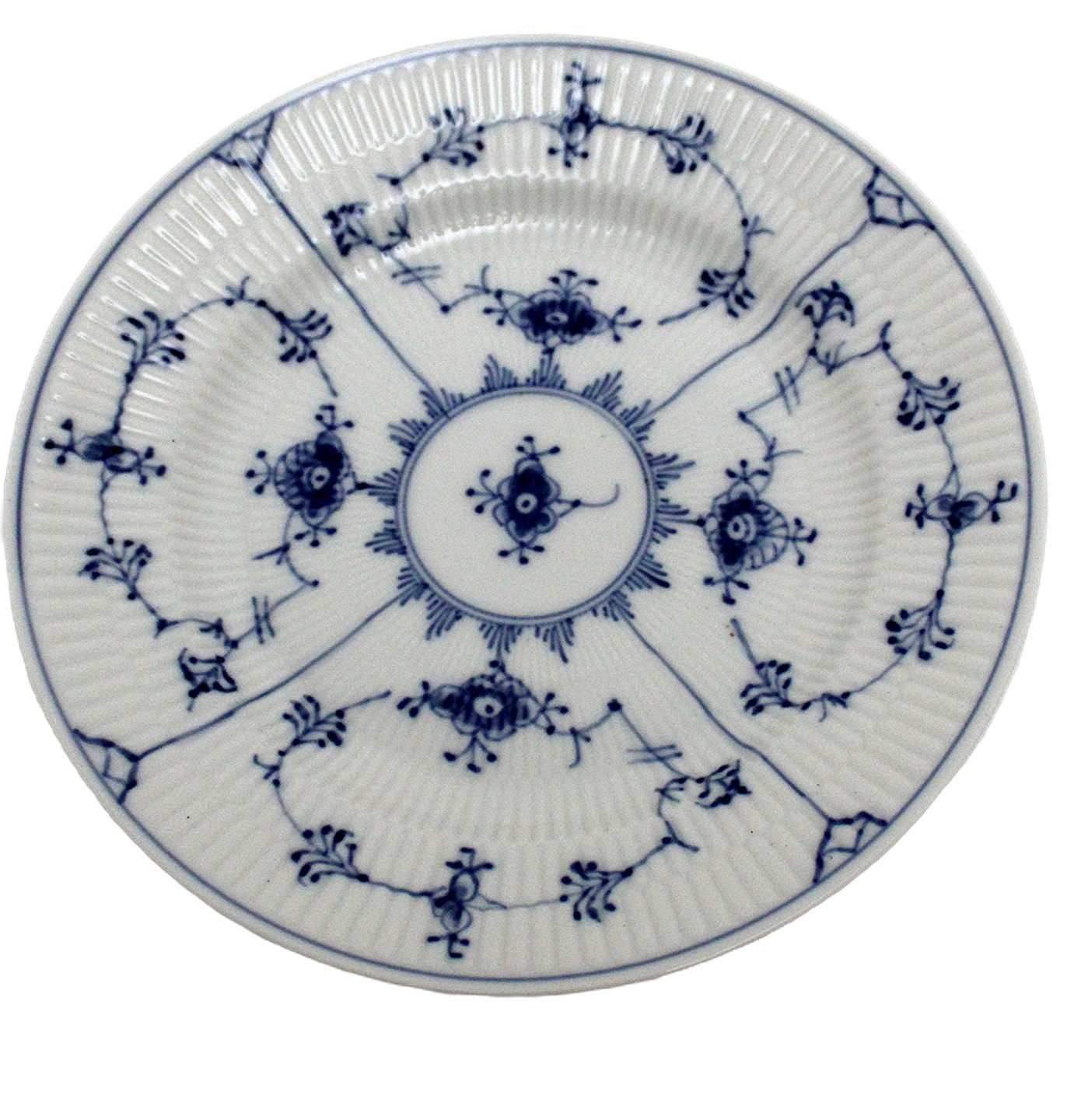 Text zugänglich auf Dänische: Frokosttallerken, Musselmalet, riflet, Kongelig porcelæn