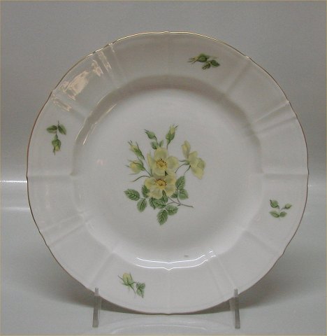 Bing & Grøndahl Klitrose 026 Frokosttallerkner 21,5 cm (326) Hvidt kantet porcelæn med bred guldkant og klitrose. Bing & Groendahl I hel og fin stand Hybenrose