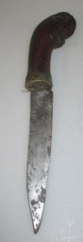 Indonesische Dolch, rund 1928. Eisenklinge und mit Griff in Holtz. In Lederetui. L:. 29.5 cm. NB: Erfordert sammler erlaubnis.
