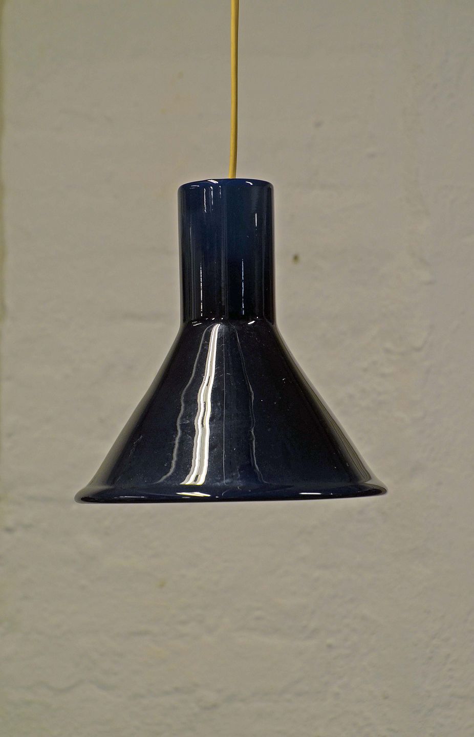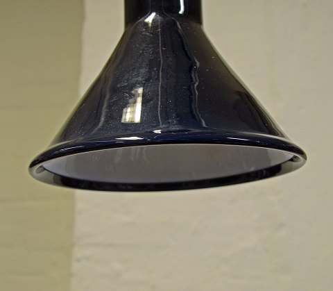 Den mere sjældne loftspendeller (nr. 18) fra Holmegaard model "Mini P&T pendel" i blåt glas.