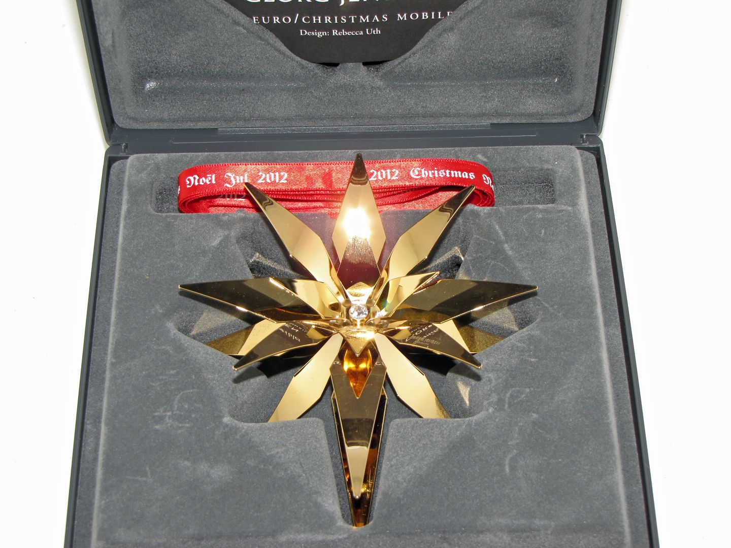 Ligger i original æske med tilhørende rødt bånd. Der er skrevet "2012" med sort tusch på æsken.