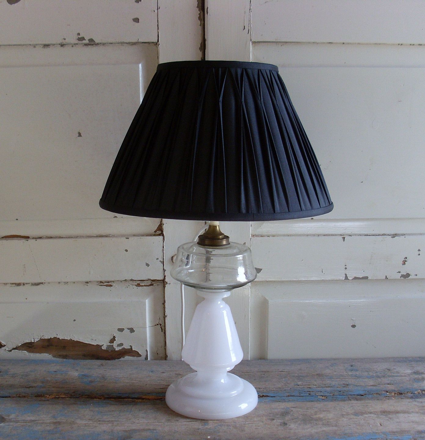 Text zugänglich auf Dänische: Smuk opaline olielampe, omlavet til el.