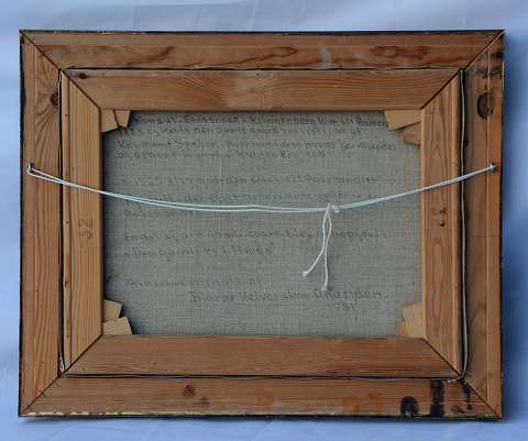 Maleri af Klingenbergs gaard på lærred af Bjarne Helverskov. Signeret. Lette brugsspor på rammen. Pæn stand.