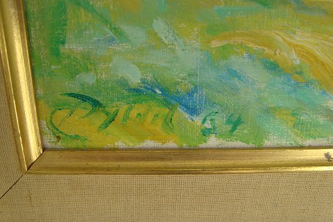 Text zugänglich auf Dänische: Maleri af Chr. Dybdal - Skovparti 1964 inspireret af den franske impressionisme.