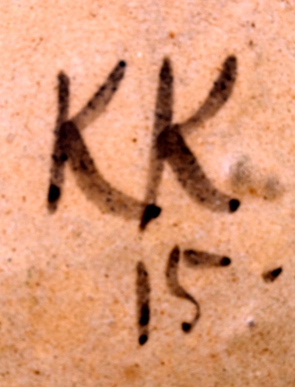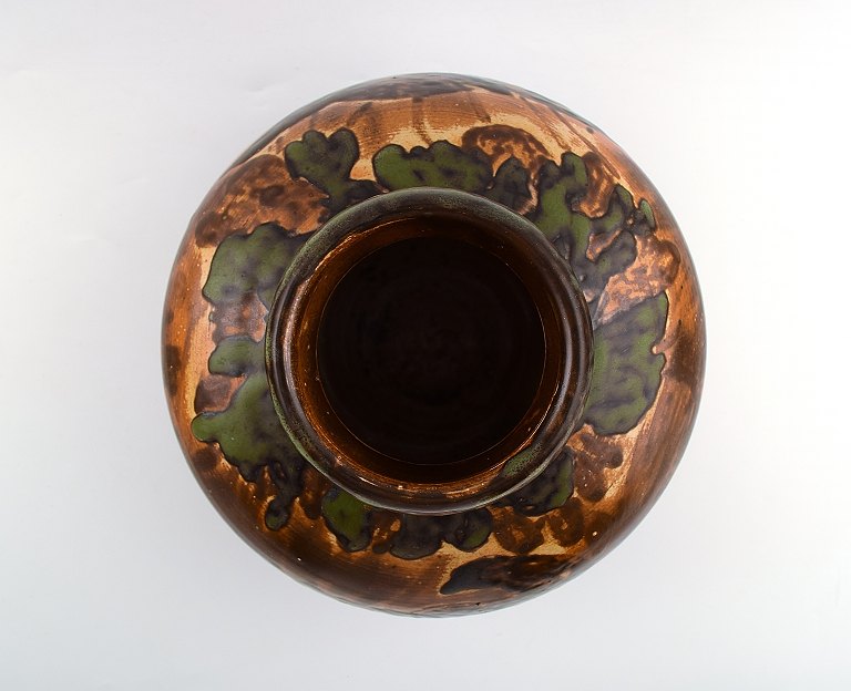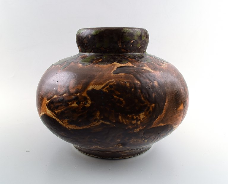 Text zugänglich auf Dänische: Unika Knud Kyhn for B&G, Bing & Grøndahl stor keramikvase dekoreret med fugle.