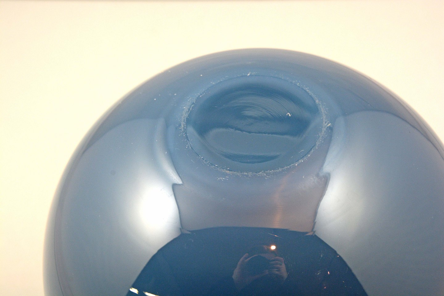 Sæt urtepotteskjulere i støvet blå nuance. Skjulerne er firkantede i toppen og runde i bunden.