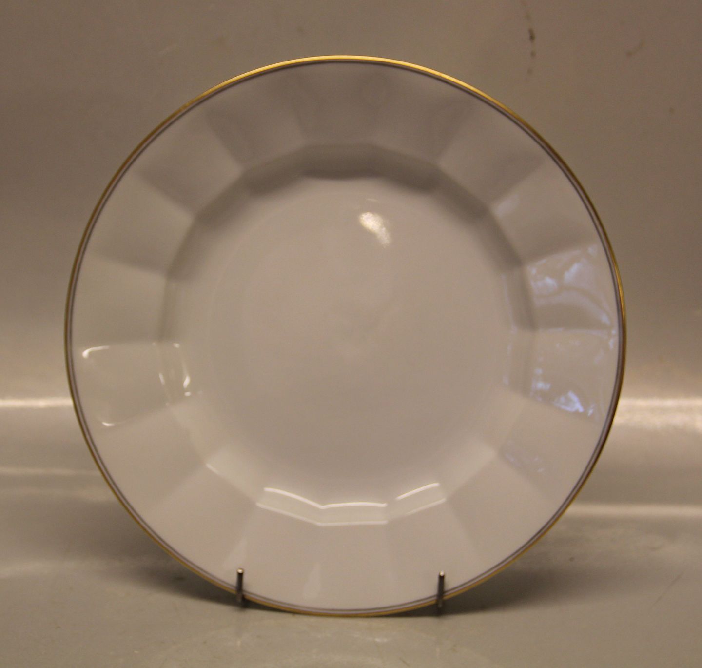 Palads 8550-1535 Tallerken frokost 22,5 cm (621) Kongelig Dansk hvid kantet stel med dobbelt guldkant (guld & platin/grå)