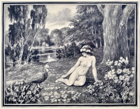 Dänische Künstler (20. Jahrhundert.): Nackte Frau und Pfau.