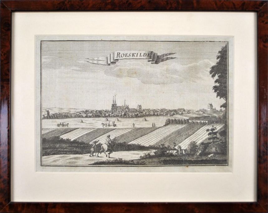 Haas, Jonas (1720 - 1775) Dänemark. Roeskilde. Prospekt von Roskilde. Aus Erik Pontoppidans "Den Danske Atlas". Original Kupferstiche von Jonas Haas. 18 x 26 cm.
