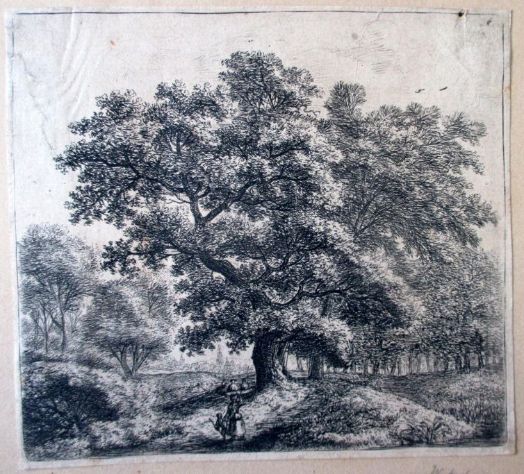 Waterloo, Anthonius (1610 - 1690) Holland: Eine Straße mit einer Eiche. Gravur. Unsigned. 13,2 x 15 cm.