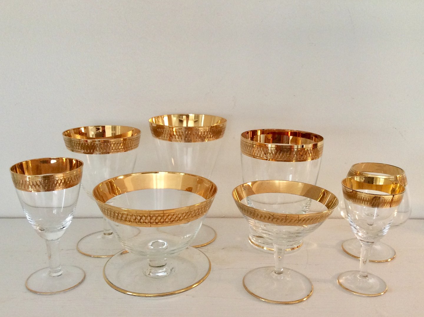 | Lyngby Glas, Tosca, Cognac Glas, 8,5 cm hoch, Kristallglas mit Goldband * Guter Zustand *