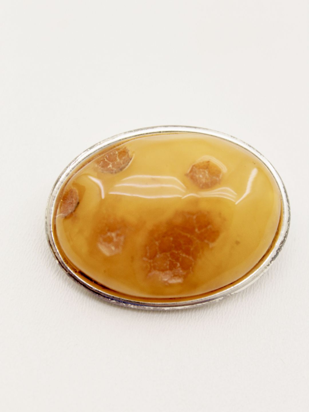 Broche sterling sølv med rav 3,3 x 2,5 cm. Nr. 338934