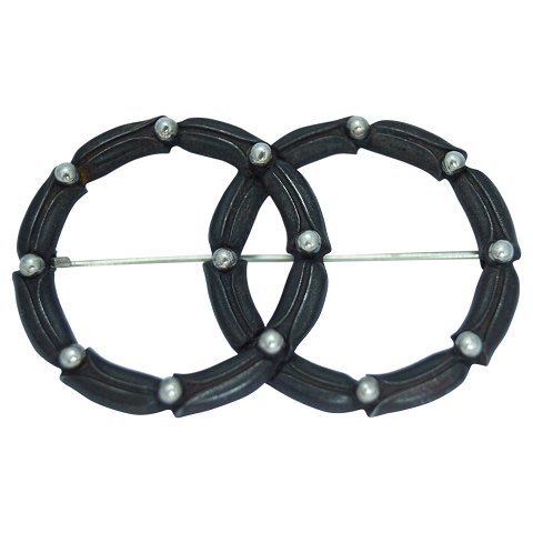 Georg Jensen; Broche af jern og sølv. 3 cm x 5 cm.