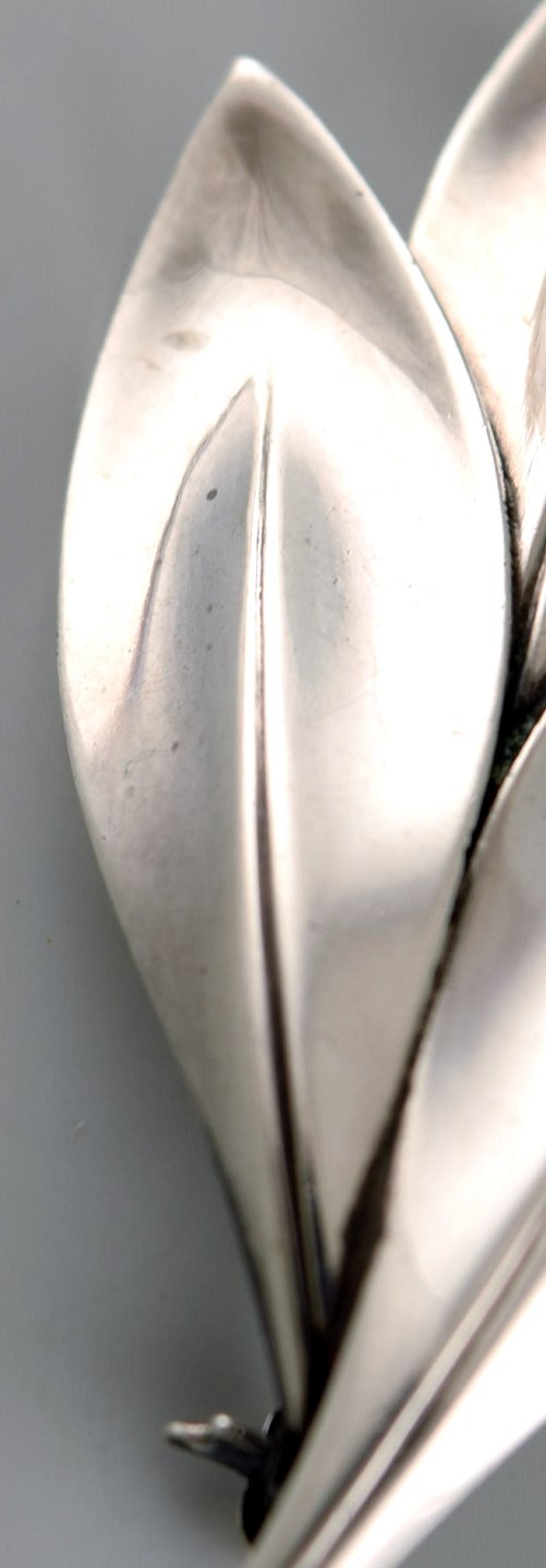 Dansk modernistisk broche i sterlingsølv i form af blade. 1960'erne.