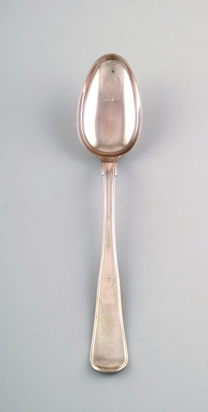Text zugänglich auf Dänische: Dansk sølvsmed. Dobbeltriflet stor suppeske i tretårnet sølv. 1950'erne.