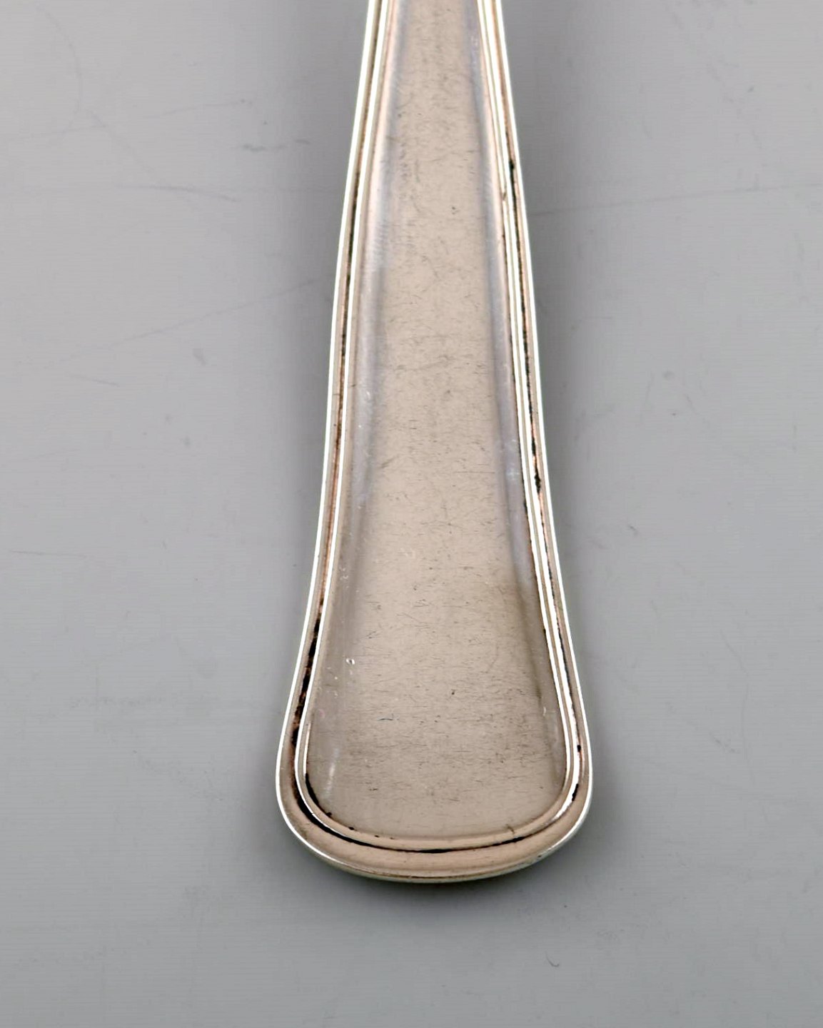 Text zugänglich auf Dänische: Horsens Sølv. Dobbeltriflet middagsgaffel i tretårnet sølv. 1950'erne.