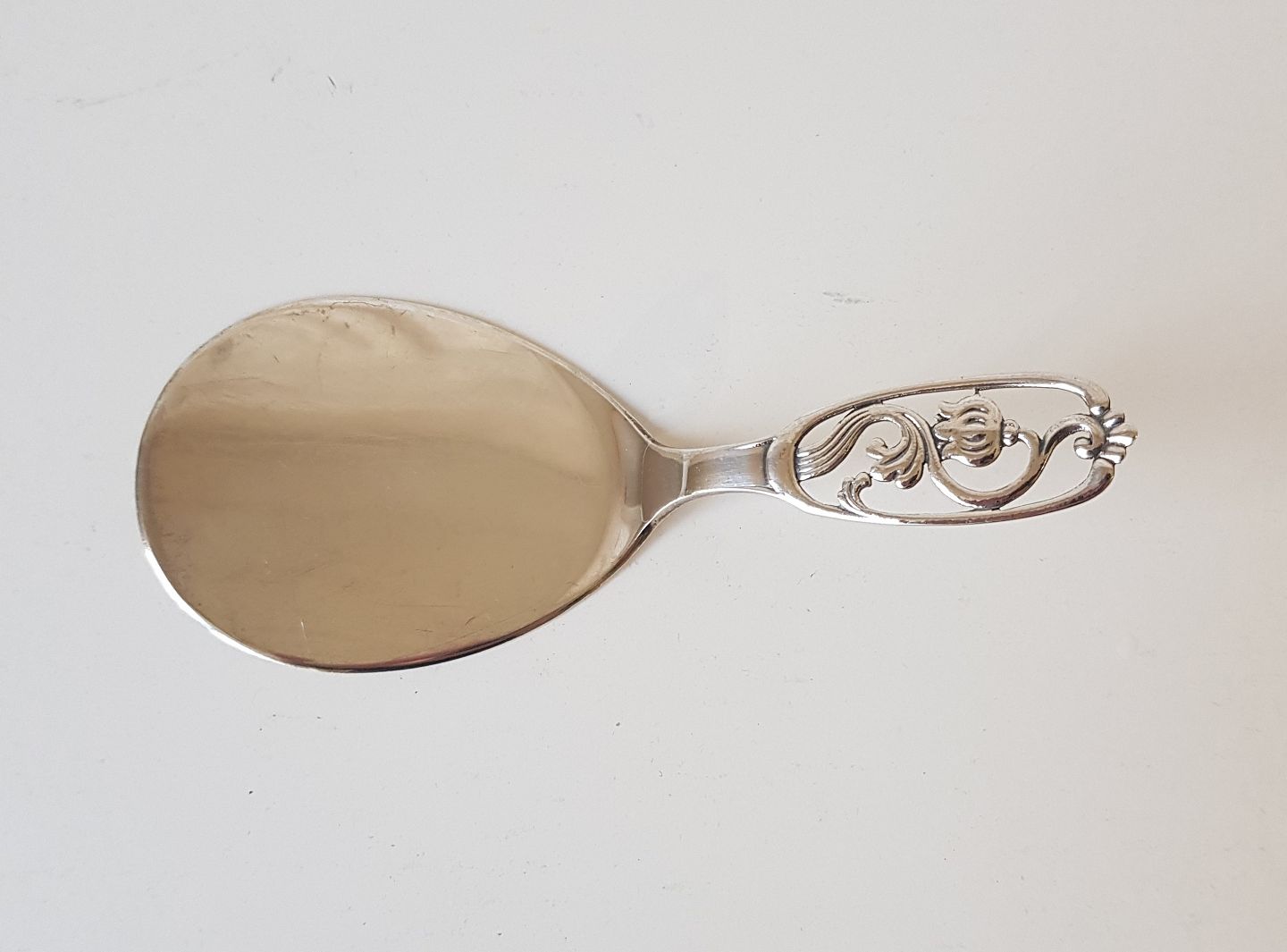 Serverings spade i sølv dekoreret med liljekonval fra 1938
