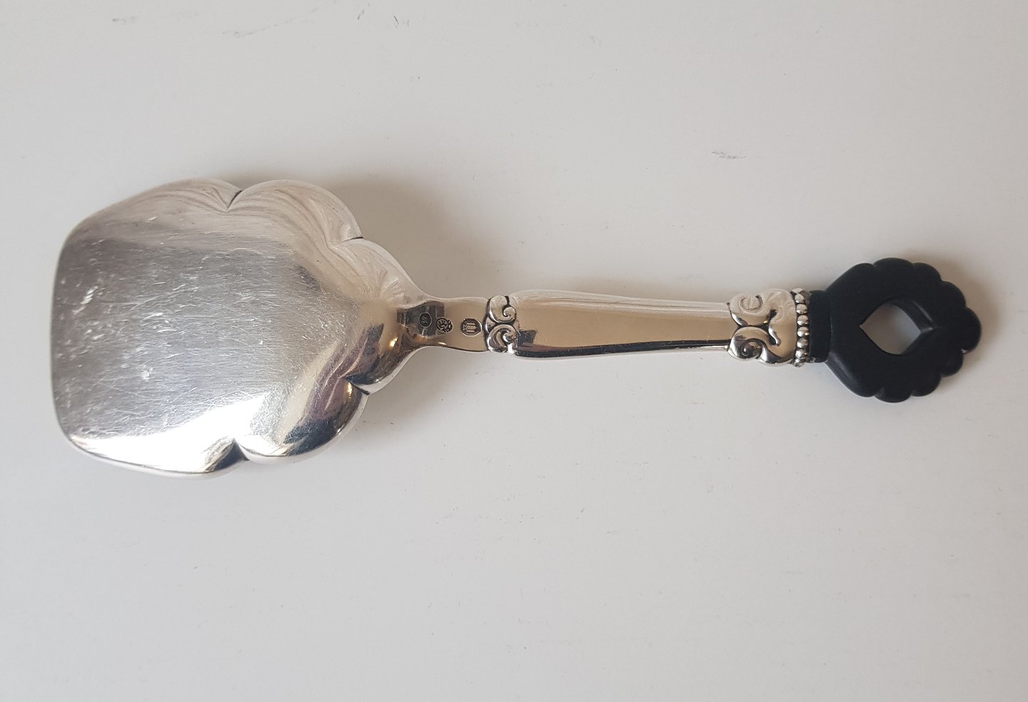 Text zugänglich auf Dänische: Serveringsspade i sølv med træhåndtag