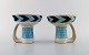 Text zugänglich auf Dänische: Carl-Harry Stålhane for Rörstrand/Rørstrand. Et par modernistiske håndmalede "Torro" vaser / kander med hank. Lyseblå og sort glasur på cremefarvet baggrund. 1960'erne.