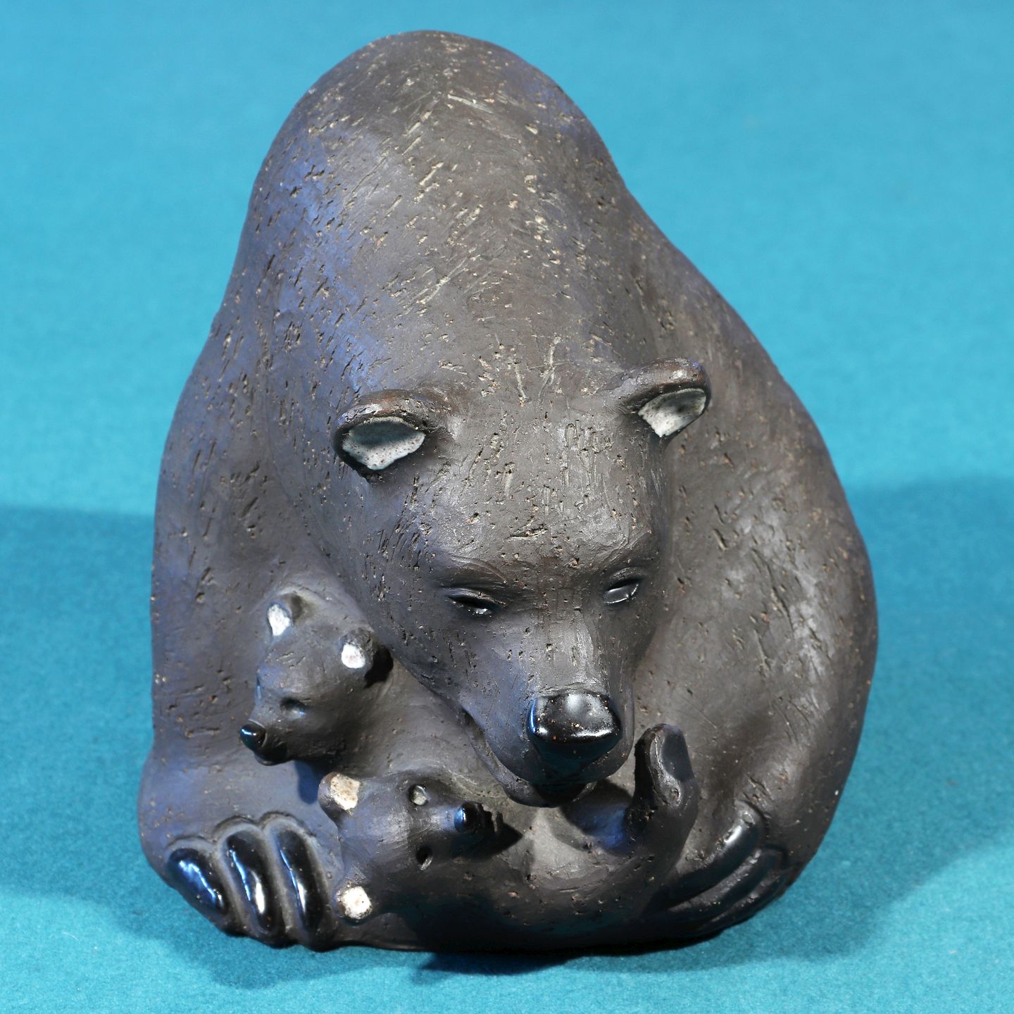 Bjørnemor med unger, unika i stentøj af Holger Jensen for Hyllested Keramik,