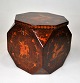 Italienische Tabakdose aus Walnussbaum mit Intarsien, Sorrent des 19. Jahrhunderts. Intarsien auf 5 Seiten mit Putto und Prägung in mehrfarbigem Holz. 8 Winkel legen. 10,8 cm. auf allen seiten. Innenseite mit Silberpapier beschichtet.