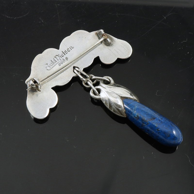 Text zugänglich auf Dänische: Evald Nielsen. Skønvirke Broche i Sølv med Lapis Lazuli.