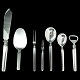 1 oplukker, 2 marmeladeske, 1 kagespade, 2 pålægsgafler, 1 serveringsspade og 1 lagkagekniv.