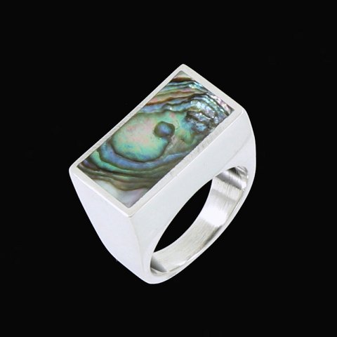 Palle Bisgaard - Denmark. Ring i sterlingsølv med Abelone #3. 1960erne