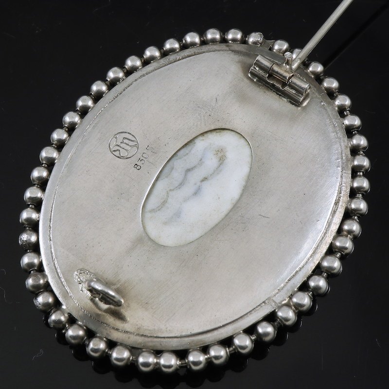 Erik Magnussen / Royal Copenhagen. Skønvirke Broche i Sølv med porcelæn.