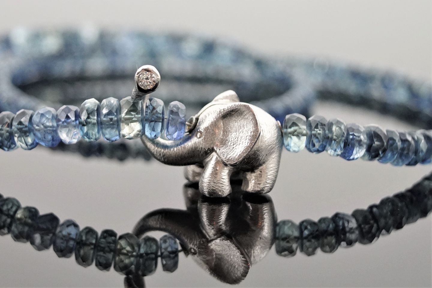 Text zugänglich auf Dänische: Ole Lynggaard; Smykkelås, elefant, af 18 kt. hvidguld med brillant