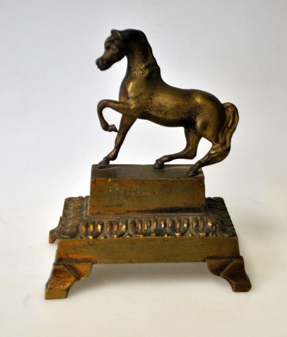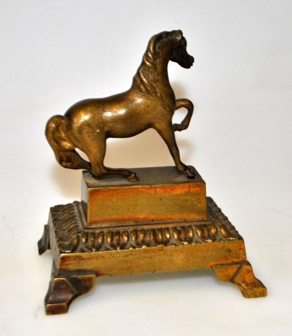 Bronzefigur eines Pferdes auf Sockel, 19. Jahrhundert. Länge: 9,5 cm. H.: 12 cm.