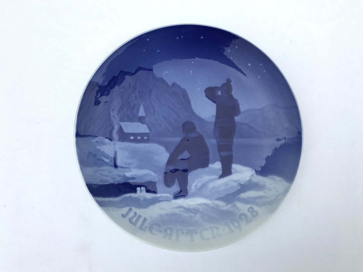 | Bing & Grondahl, Weihnachtsteller, 1928, Grönländer in der Dorfkirche, 18 cm Durchmesser, Design Johannes Achton Friis * Perfekter Zustand *