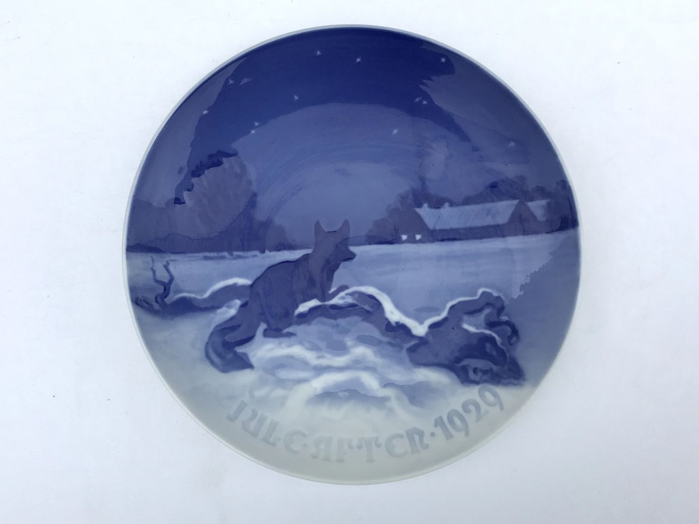 | Bing & Grondahl, Weihnachtsteller, 1929, Fox außerhalb Bauernhaus, 18 cm Durchmesser, Design Johannes Achton Friis * Perfekter Zustand *