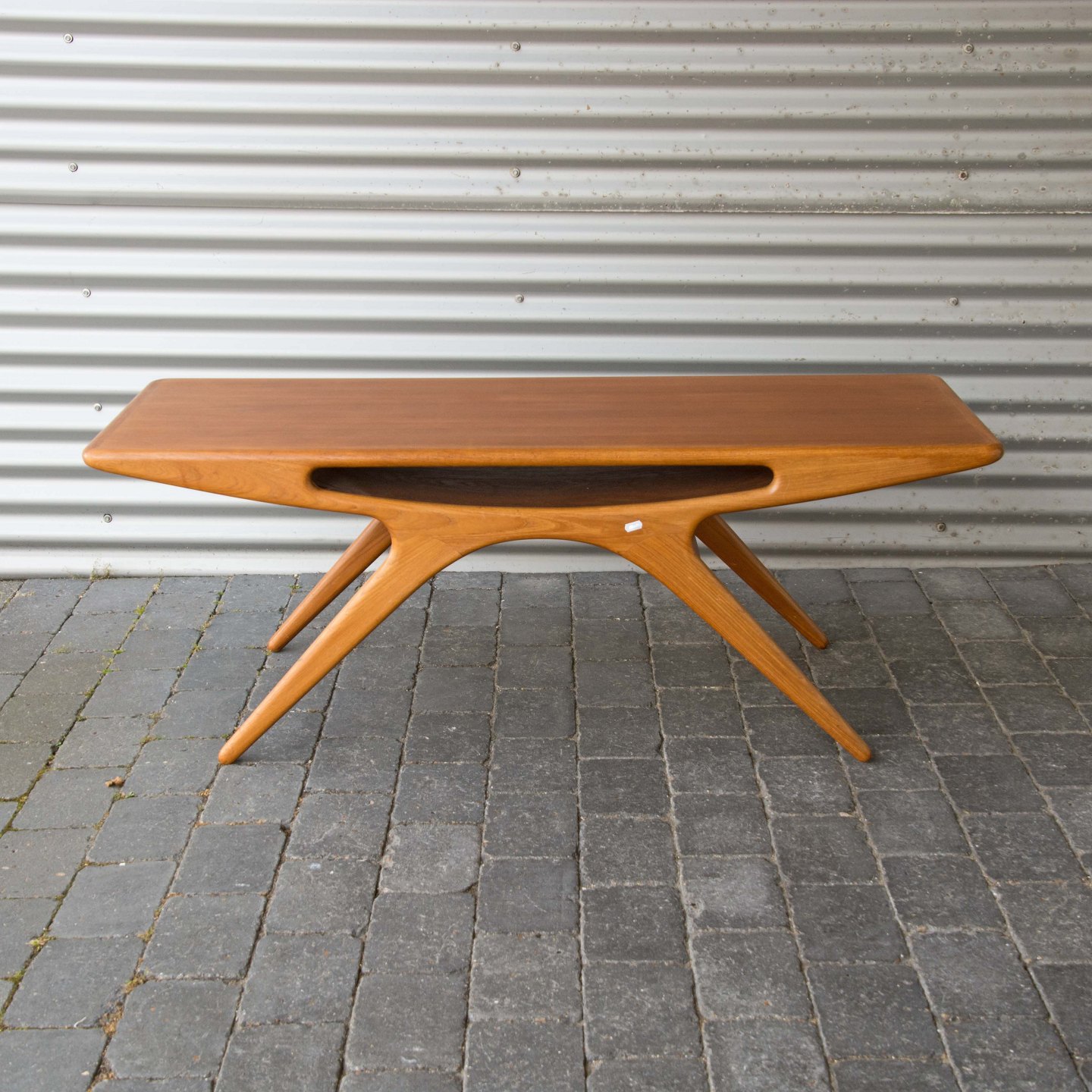 Text zugänglich auf Dänische: Smilet sofabord i teaktræ med hylde