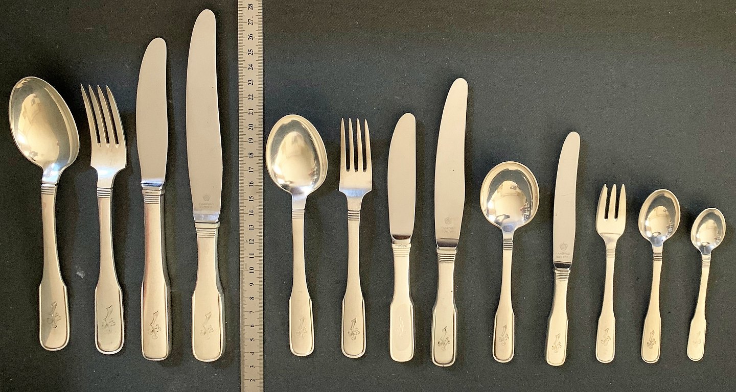 Text zugänglich auf Dänische: Arvesølv Thirslund bestik i sølv.