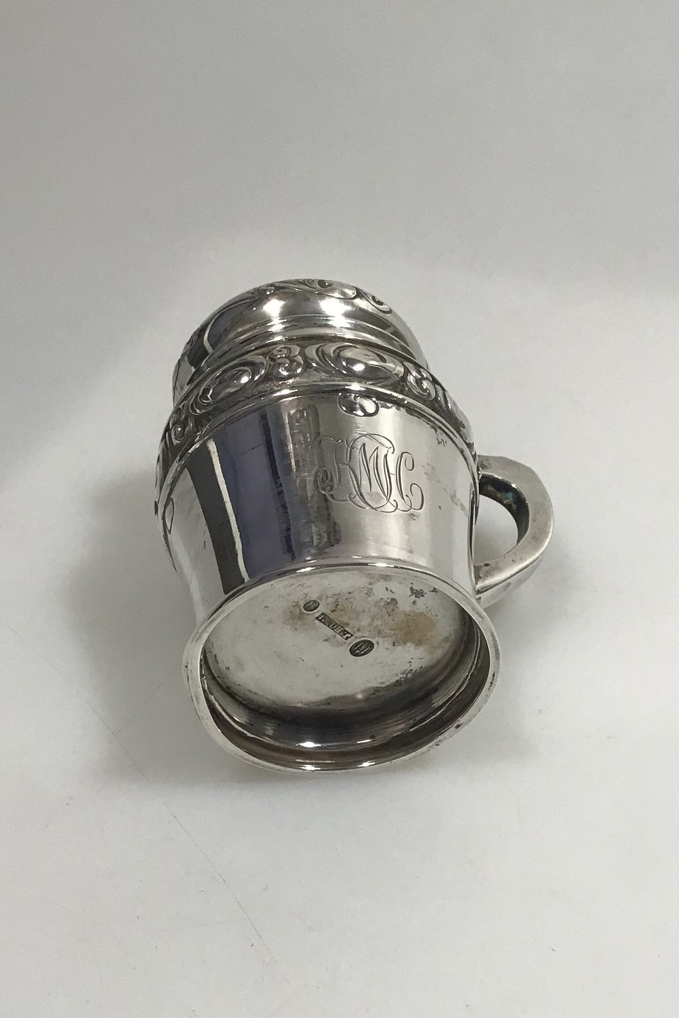 J Holm Sølv Sennepskrukke (Blå glas indsats) Måler 10 cm Samlet vægt 115.5 gr(Gravering/Brugsspor)