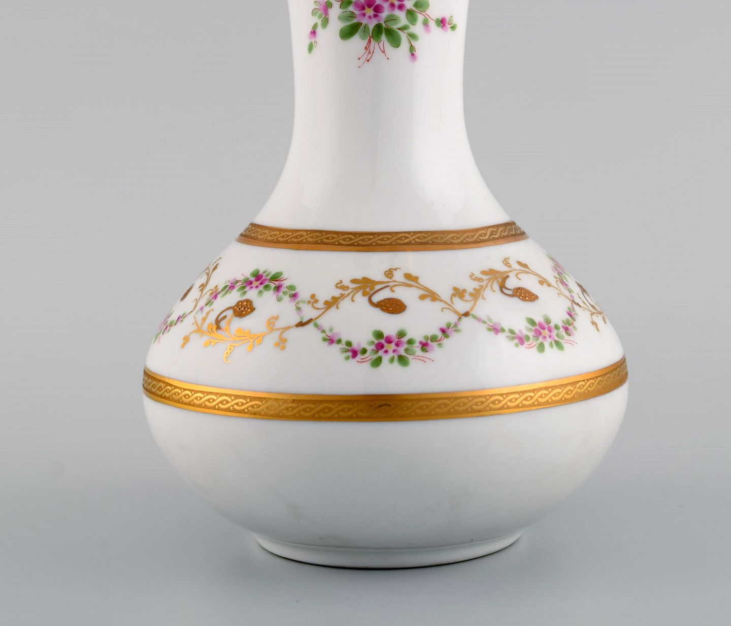 Limoges vase i håndmalet porcelæn med blomster- og gulddekoration. 1920'erne.