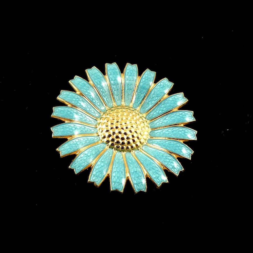 A. Michelsen Marguerit / Daisy Broche i forgyldt Sterling Sølv med turkis emalje - 43mm