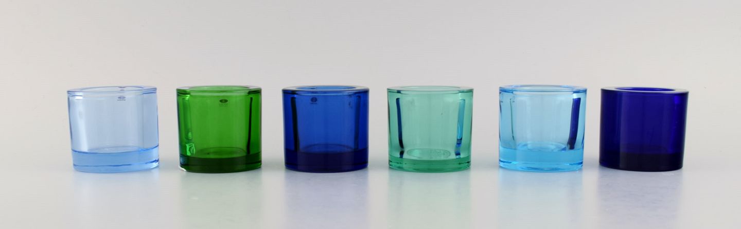 19 Iittala lyseholdere til fyrfadslys i kunstglas. Marimekko. 1900-tallet.