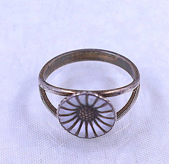 Sterling Sølv, 925s, Marguerite ring, ringen er forgyldt sølv med emalje.