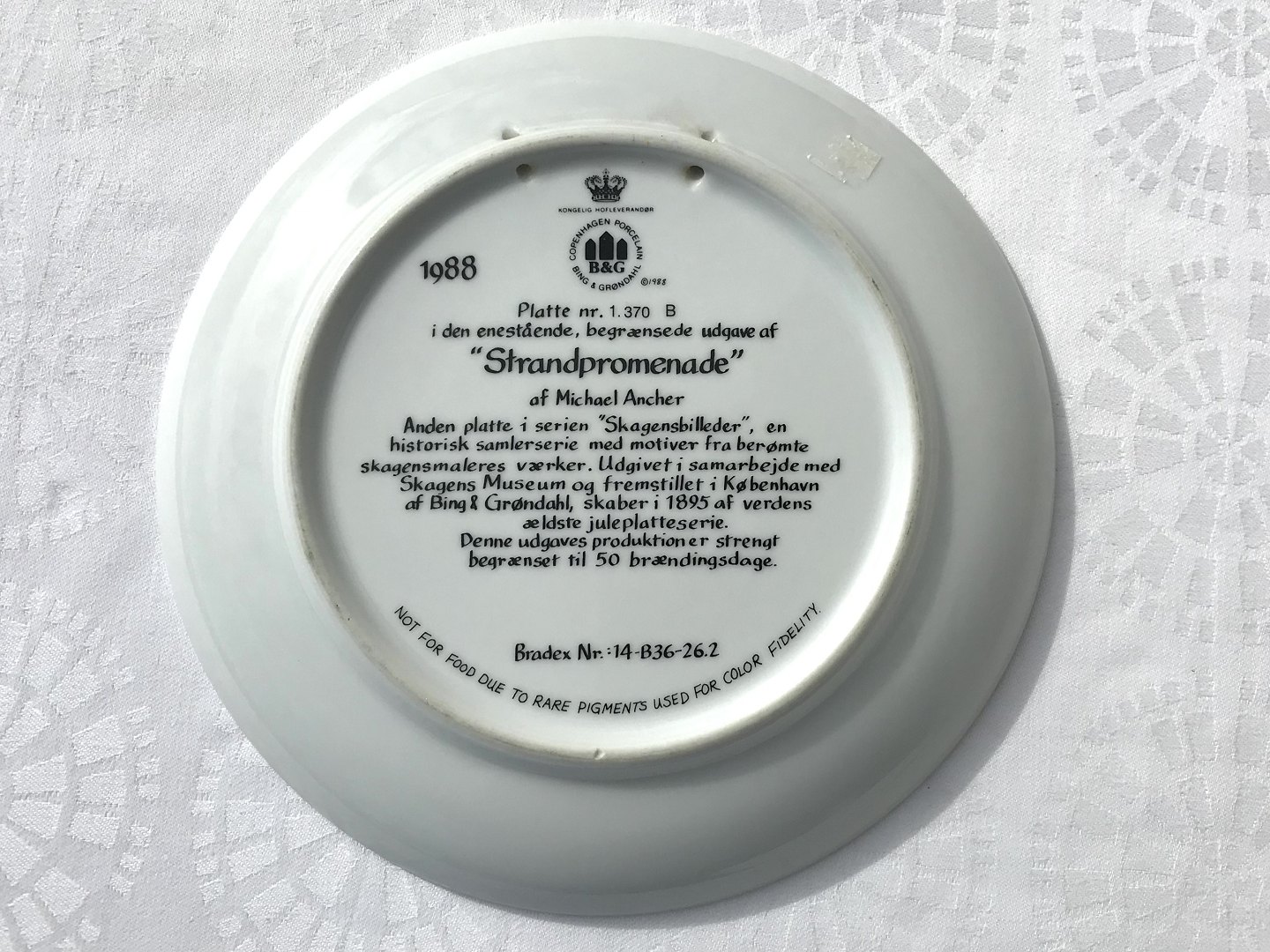 Bing & Grondahl, Skagensmalerne, 1988, Tafel-Nr. 6, „Strandpromenade“, Michael Anker, 21 cm Durchmesser, * Perfekter Zustand *