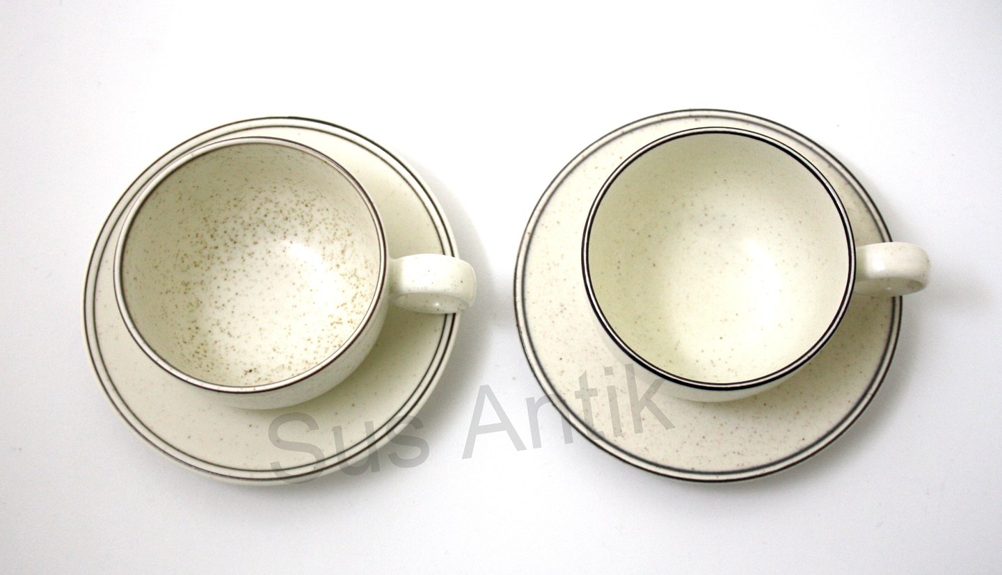 Text zugänglich auf Dänische: Gustavsberg senere Arabia, Birka, kaffekop med underkop. Designet af Stig Lindberg. Produceret i perioden 1973-1987. Mærke: Gustavsberg Stengods VDN S555 Sweden, owen, table, dishwater. Mærke: Arabia Finland.