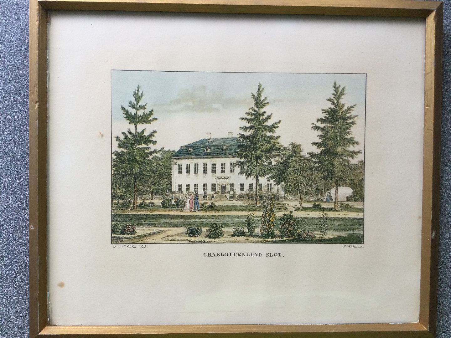 Tryk efter kobberstik af Jens Holm efter tegning af H.G.F. Holm - Charlottenlund Slot.