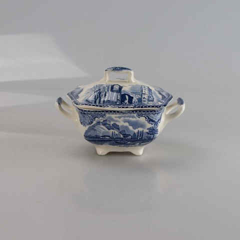 Sukkerskål i engelsk fajance fra stellet Old Britain Castles blue