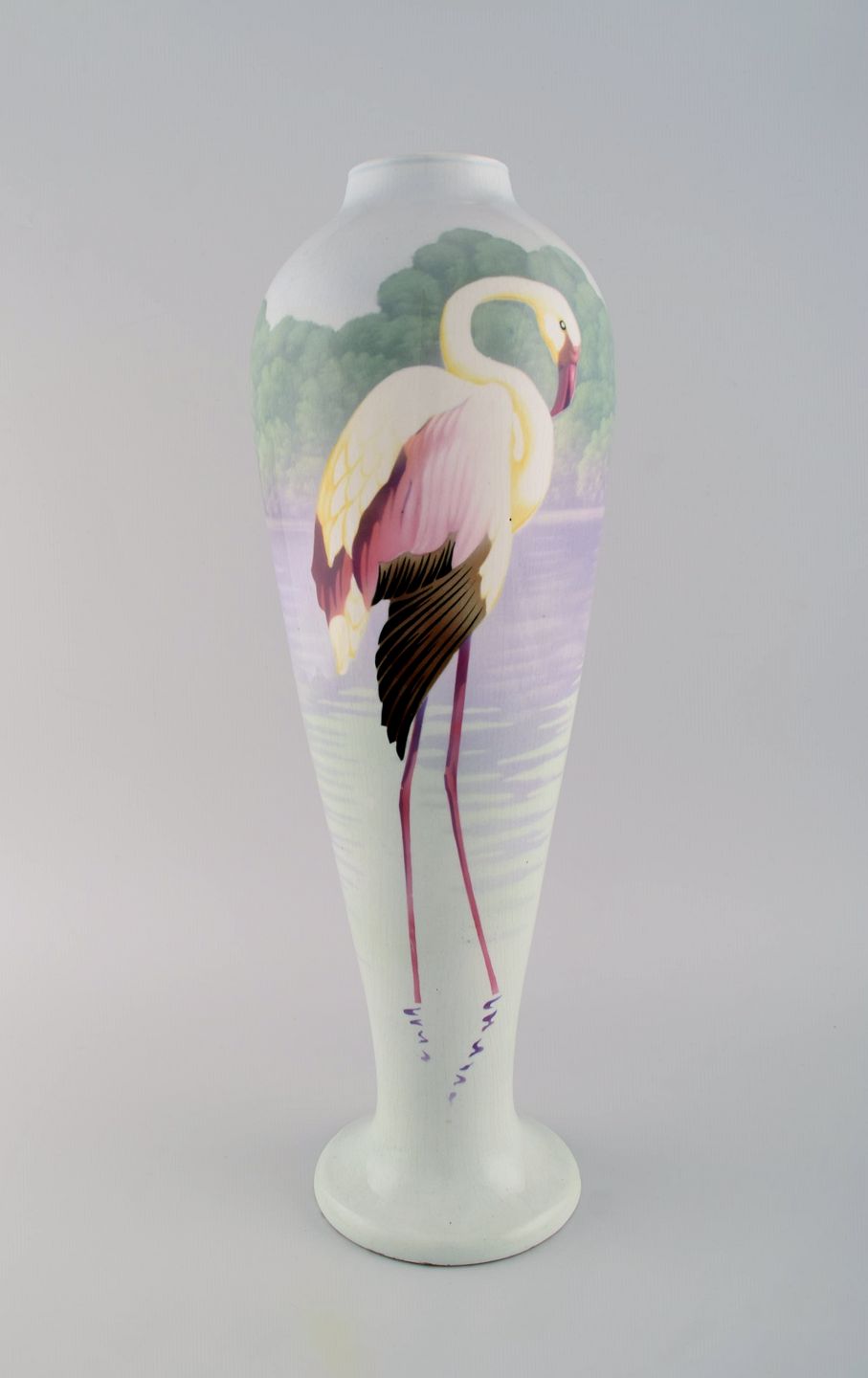 Et par store store fajancevaser med håndmalede flamingoer og søpavillion. 1930'erne.