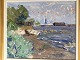 Maleri af Børge Bokkenheuser - Kystparti med båd på strand.