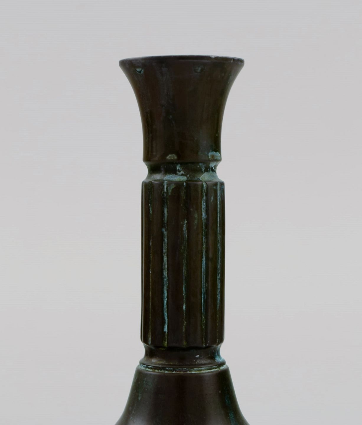 Text zugänglich auf Dänische: Just Andersen (1884-1943), Danmark. Tidlig art deco lysestage i diskometal. 1920/30'erne. Modelnummer D17.