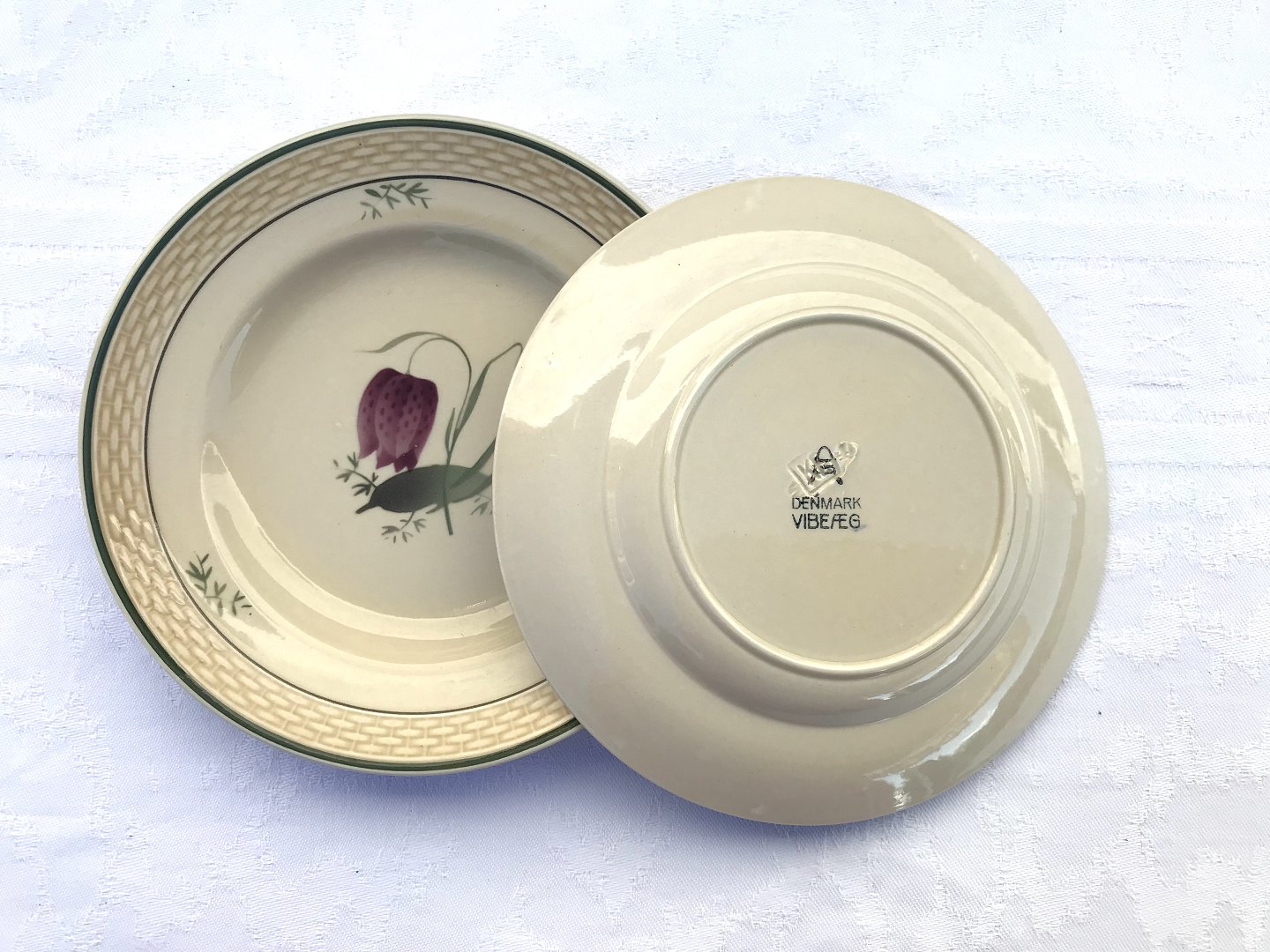 Royal Copenhagen, Aluminia, Victoria II Rahmenform, Vibe Egg, Fritillaria meleagris, Kuchenteller, 15cm Durchmesser, Design Nils Thorsson * Schöner Zustand *